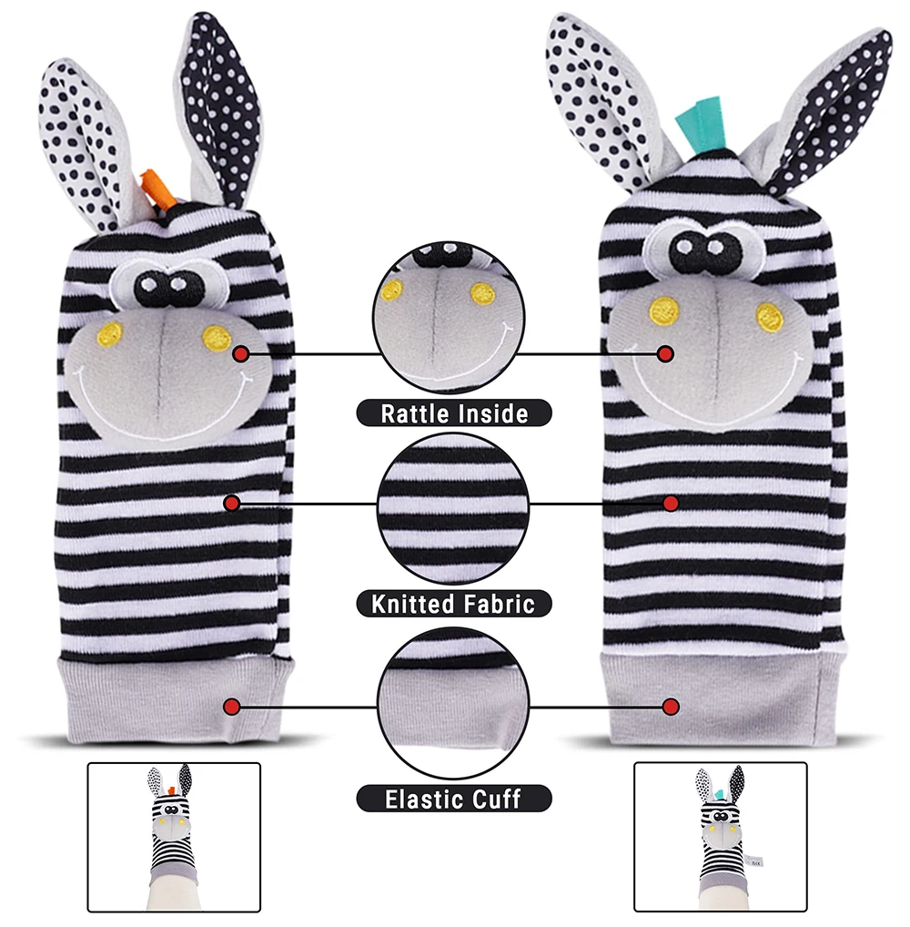 1: RATOS PARA BEBÊ DE 0 a 6 MESES: Esses brinquedos para bebês de 0 a 3 meses projetados com cores de alto contraste e looks de animais sorrentes.Estes chocalhos para bebês de 0 a 6 meses 2 peças de chocalhos de pulso e 2 peças de meias de chocalho para bebês de 0 a 6 meses.Este brinquedo de chocalho infantil é uma escolha inteligente para bebês de 6 a 12 meses.