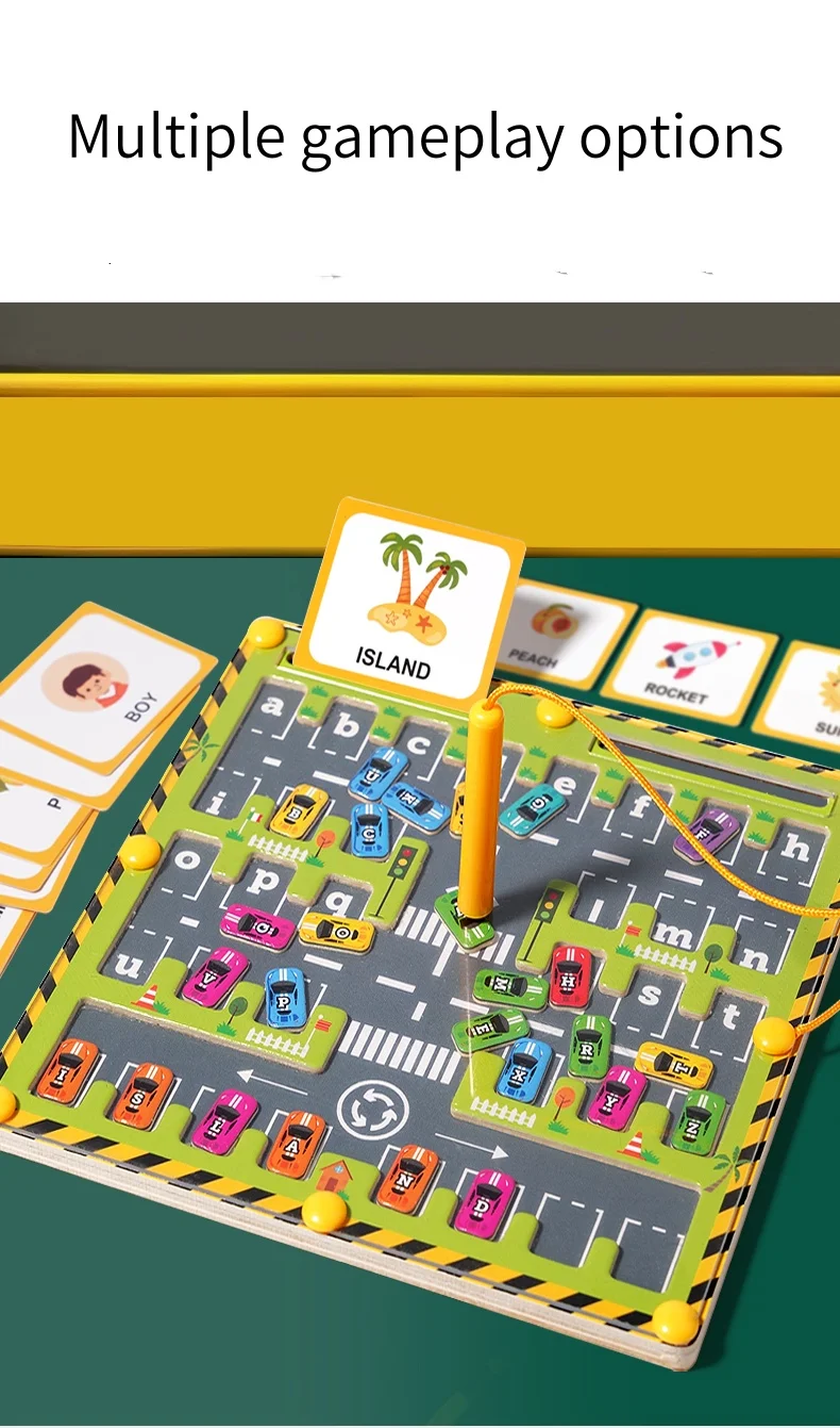 🚗 Nova versão com cartas: Inclui um conjunto de cartas para as crianças combinarem com carros do alfabeto correspondentes, proporcionando uma camada adicional de treinamento cognitivo e ajudando a desenvolver o pensamento lógico.