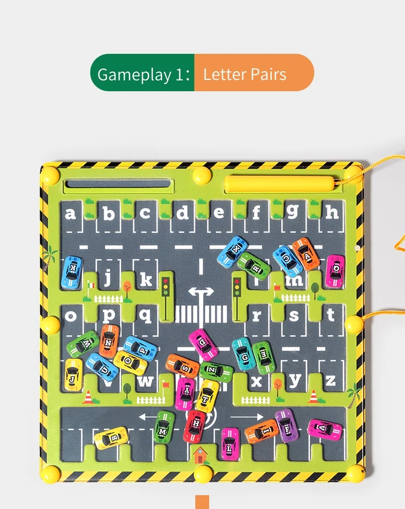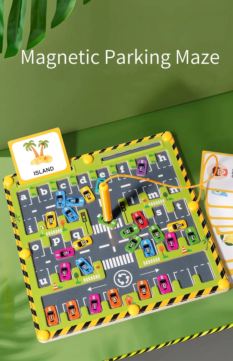 🚗 Jogos magnéticos para crianças: envolva seu filho com o labirinto de alfabeto magnético RIYONG com "espaciais de estacionamento" integrados para cada letra e carros magnéticos coloridos para combinar, melhorando o reconhecimento de letras e as habilidades motoras finas.