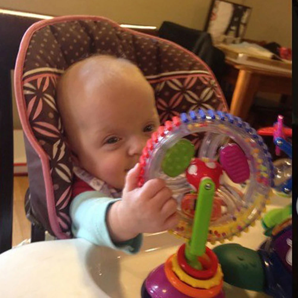 BRINQUEDO DE CADEIRA ALTA: A base possui uma ventosa que pode ser sugada em objetos lisos, como carros de jantar, pisos, etc. Você também pode usar a ventosa para colocar com segurança a roda gigante em uma cadeira alta para seu bebê brincar. Fácil de limpar, limpe o brinquedo da cadeira alta com um pano levemente úmido e macio antes e depois do uso.