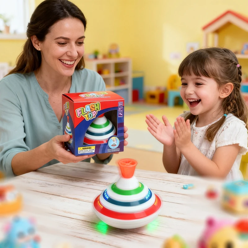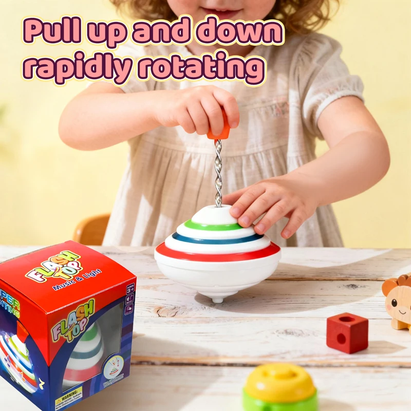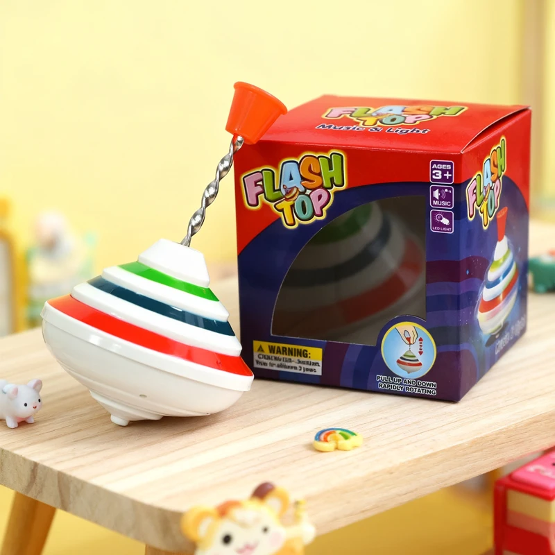 ●Pressando giroscópio musical com luz sonora rotativa, brinquedo giratório para crianças