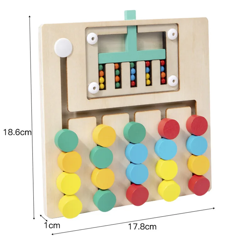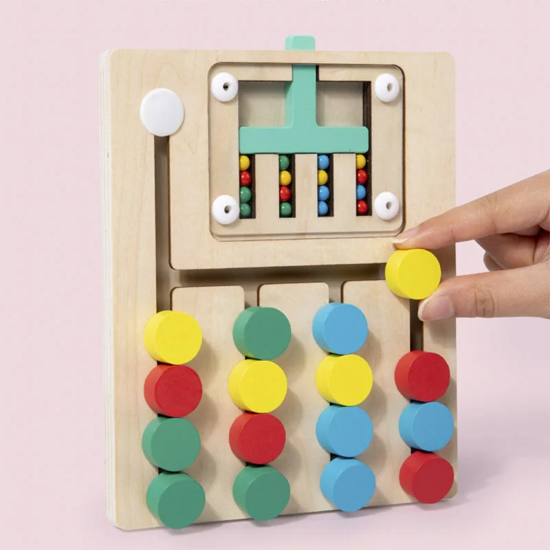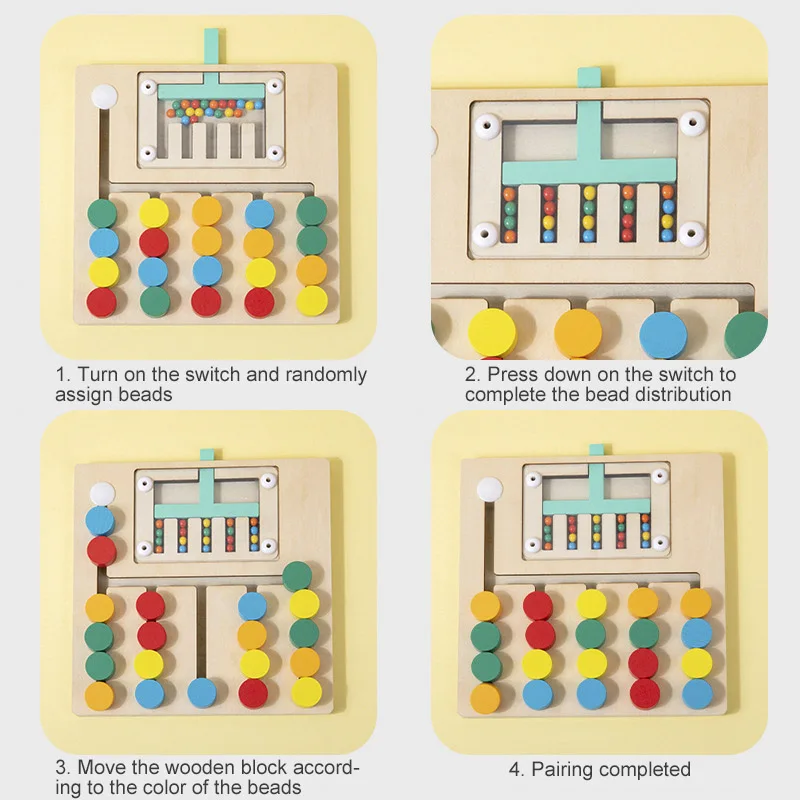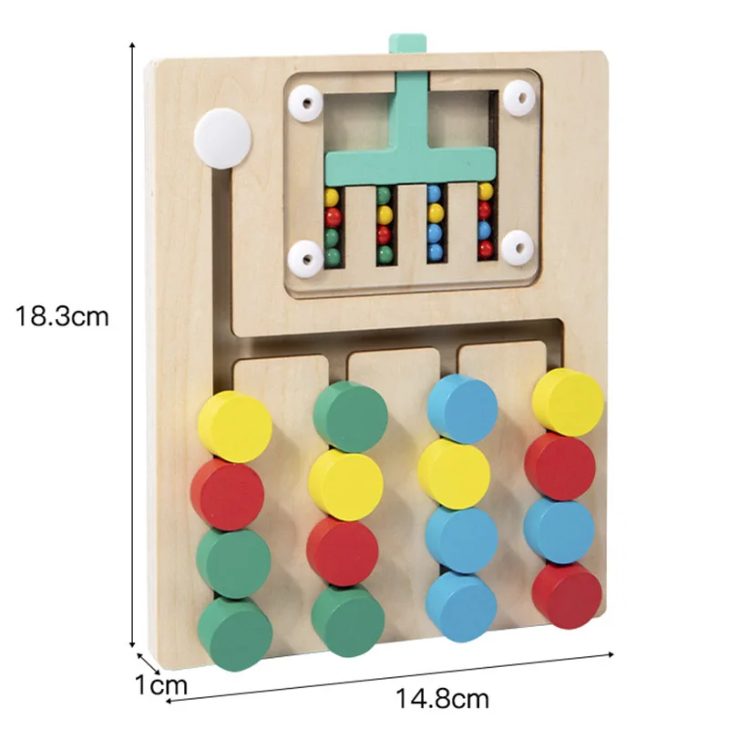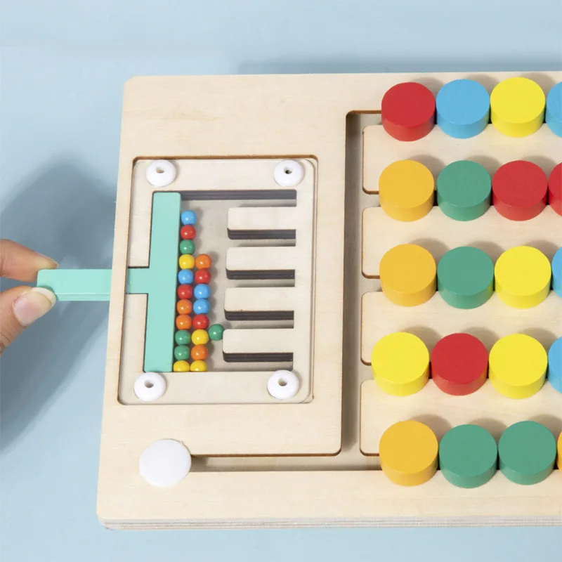 3.Mova o bloco de madeira de acordo com a cor das contas
