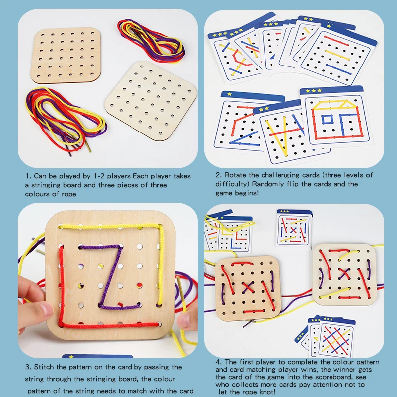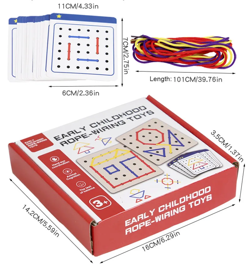 Brinquedos educativos de madeira montessori, corda geométrica, jogos de rosqueamento, educação precoce das crianças, placa de treinamento de pensamento, brinquedos educativos