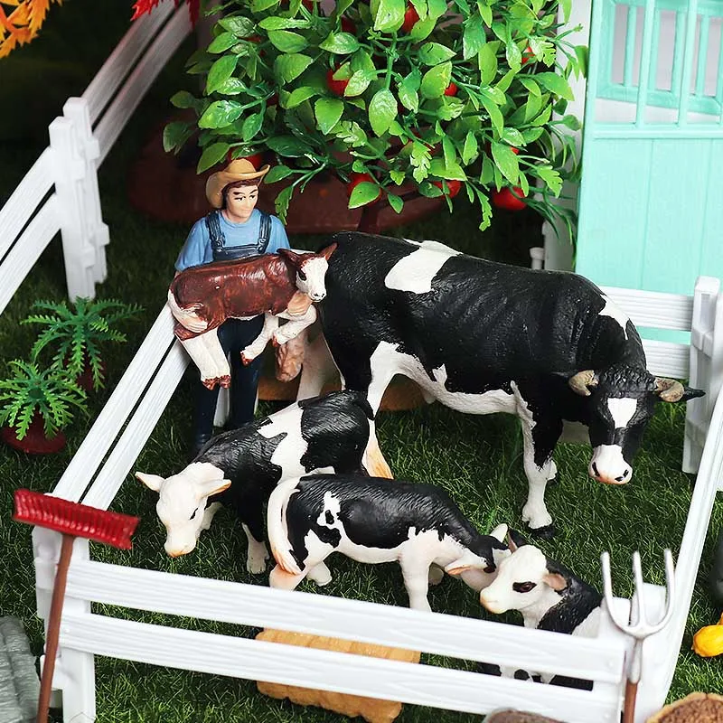 Recurso:Oenux decoração de casa casa de cachorro cerca equestre palma fazenda vaca cavalo modelo animal figuras de ação em miniatura bonito brinquedo do miúdo presente