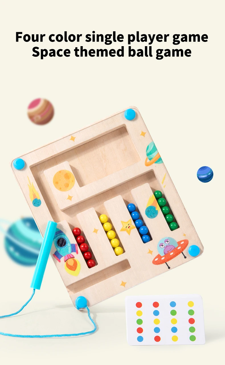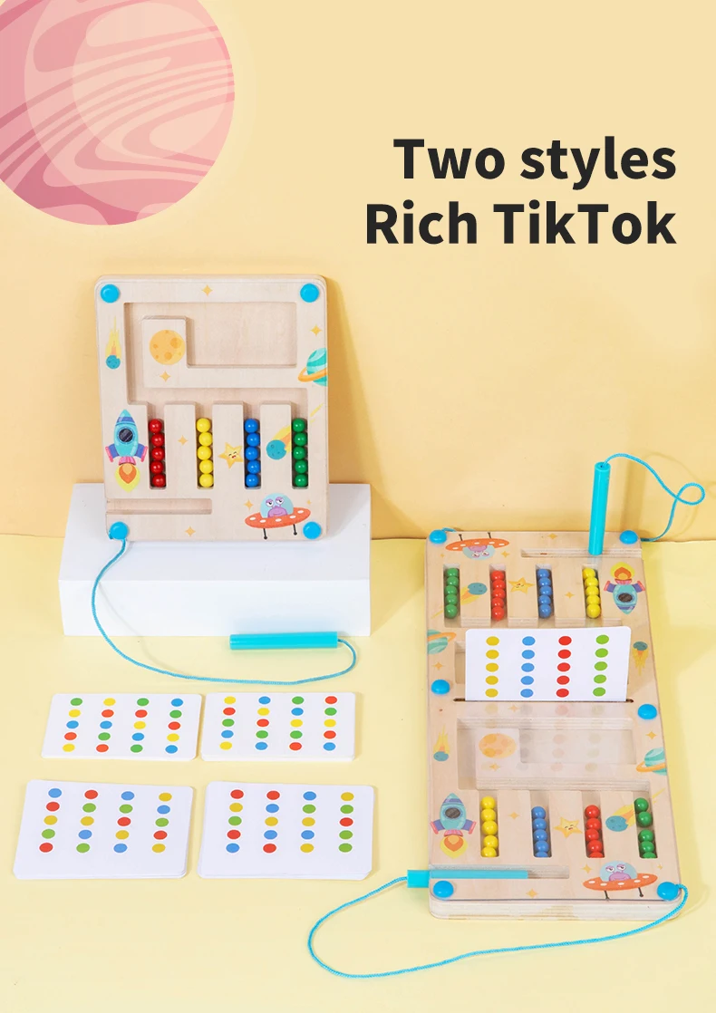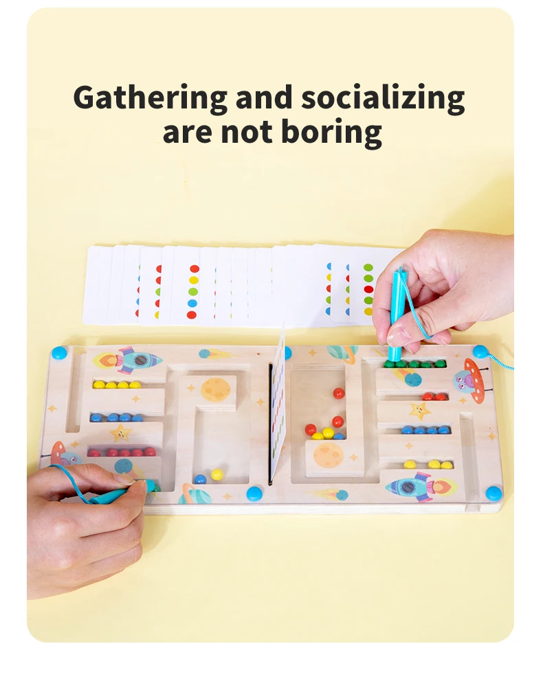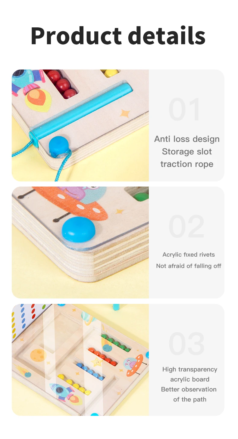 Tábua de batalha magnética de madeira:Este brinquedo de batalha Montessori labirinto magnético usa uma haste magnética anexada para deslizar sobre uma superfície acrílica, completando jogos de combinação de formas e cores.