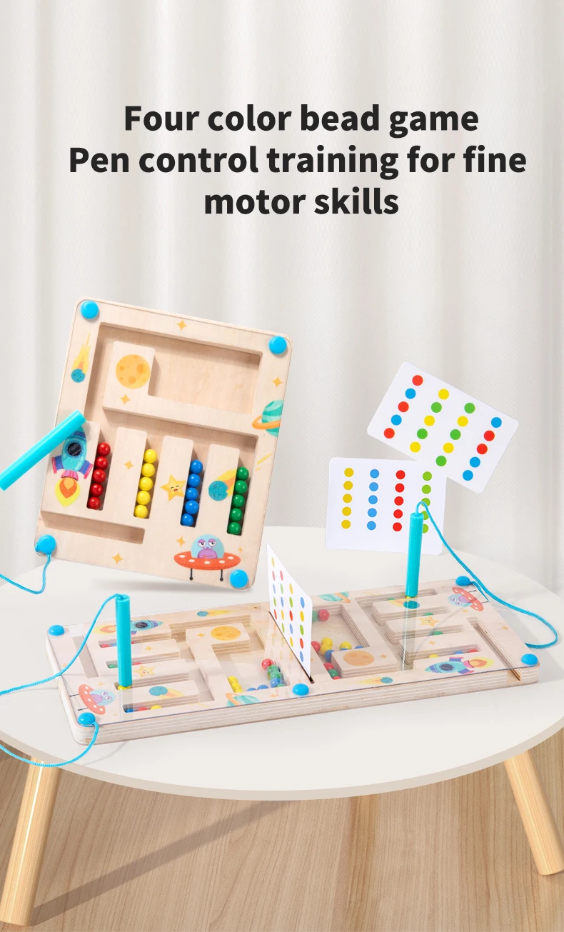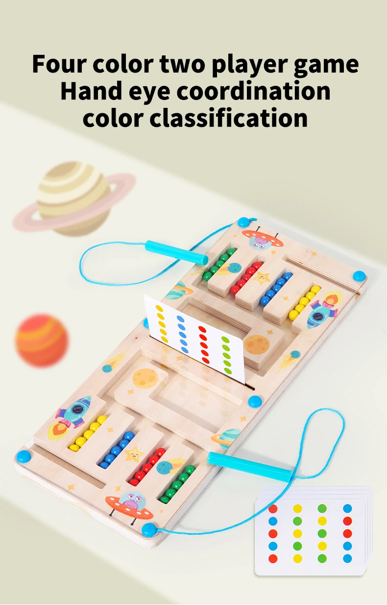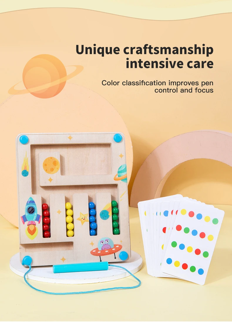 Tábua de batalha magnética de madeira:Este brinquedo de batalha Montessori labirinto magnético usa uma haste magnética anexada para deslizar sobre uma superfície acrílica, completando jogos de combinação de formas e cores.